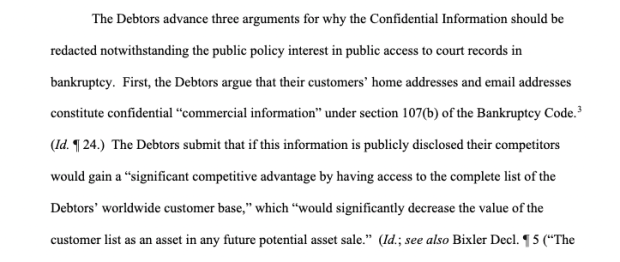 First, Celsius argued that such a large database of consumer information was too valuable for the company to be made public. Doing so would “significantly decrease the value of the customer list as an asset in any future potential asset sale,” the company claimed.