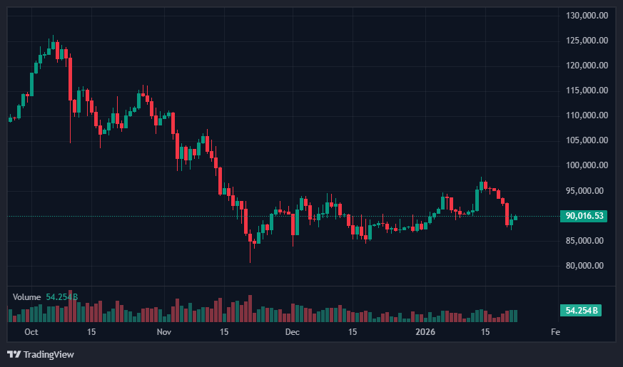 • Bitcoin returned to $90,000 and US shares rallied after President Trump canceled deliberate EU tariffs following a “framework” deal for Greenland.
