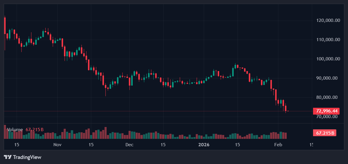 - $74,000 is the “make-or-break” help stage; a decisive break under it may speed up a slide towards the $58,000 vary (the 200-week transferring common).
